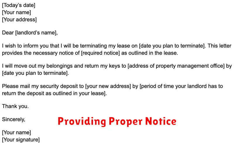 Providing adequate notice is crucial when breaking a lease. Your lease agreement specifies the required notice period, typically 30 or 60 days. Failing to provide sufficient notice can lead to legal and financial repercussions.