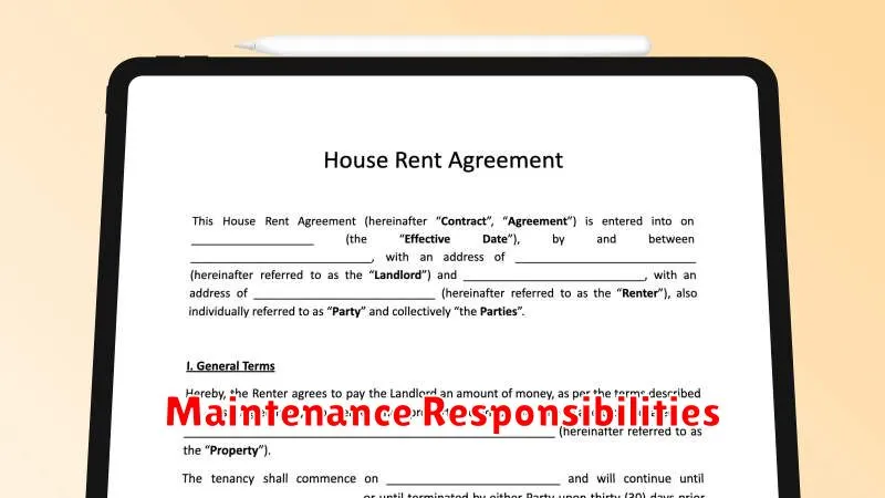 A crucial aspect of any rental agreement clarifies maintenance responsibilities. This section should explicitly state who is responsible for which repairs and upkeep tasks.