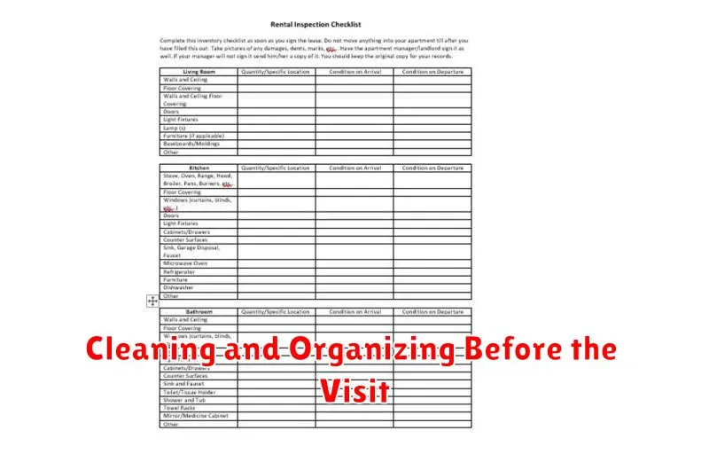 Before the inspection, thoroughly document any existing damage to the property. This protects you from being held responsible for pre-existing issues.